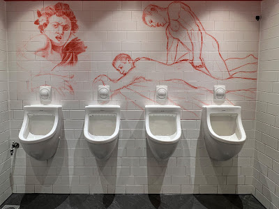 La vieille femme a pris son tube de rouge à lèvres pour tracer sur sa peau des dessins en forme de croissants rouge vif.